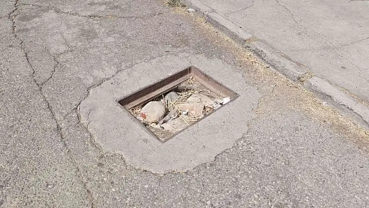 Adıyaman'da, cadde kenarında bulunan yağmur suyu mazgallarını çalan kimliği belirsiz şahıs yada şahıslar, açılan mazgal çukurunu da taşla doldurdular.