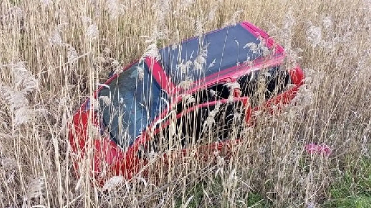 Manisa'nın Saruhanlı ilçesinde yağan yağmur sonrası kayganlaşan yolda sürücüsünün direksiyon hakimiyetini kaybettiği otomobil yol kenarındaki kanala düştü.