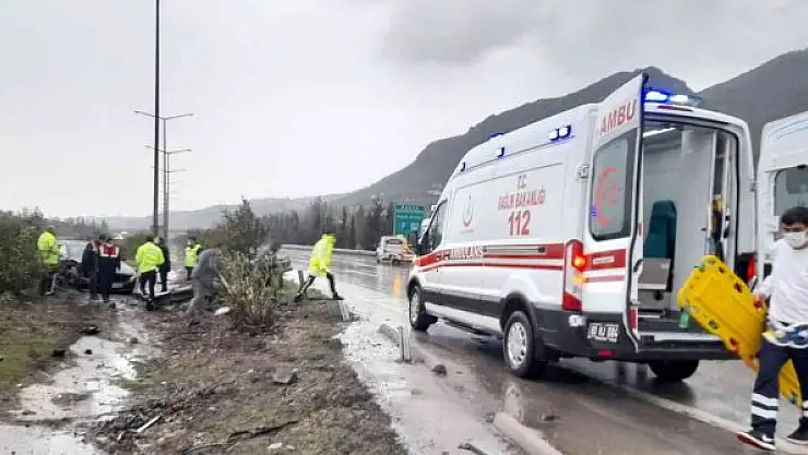Osmaniye'de otoyolda seyir halindeyken yağmur yağışı nedeniyle kayan otomobilin bariyerlere çarpması sonucu bir kişi yaralandı.