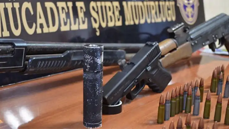 "Şanlıurfa/Suruç’ta icra edilen adli aramalarda, cep telefonu düzeneği ile irtibatlı 2 el yapımı patlayıcı, 1 kilo C4 patlayıcı, 1 kalaşnikof piyade tüfeği, 1 av tüfeği, 1 tabanca, 2 roketatar başlığı, 15 tabanca fişeği, 1 Kalaşnikof piyade tüfeği şarjörü ve 2 tabanca şarjörü ele geçirilmiştir."