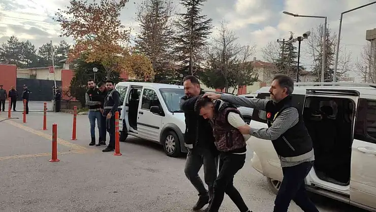 Afyonkarahisar'da 36 yaşındaki adamı boynundan bıçaklayarak öldüren iki zanlı adliyeye sevk edildi. Şahısların adliyeye sevkleri esnasında polis geniş güvenlik önlemi alırken, şahısların yakınları ise adliye bahçesinin dışından şüphelilere "kafanı örtme (eğme) Serkan" diye bağırdı.