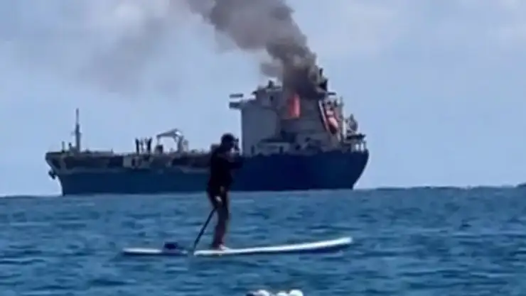 Yakıt gemisindeki yangını mürettebat söndürdü