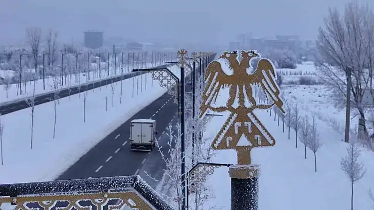 Selçuklu Devleti simgesi olan ve Sivas'taki aydınlatma direklerinin üzerinde bulunan çift başlı kartal figürü de soğuk havaya yenik düştü. Kentteki soğuk havanın yansımaları havadan görüntülendi.