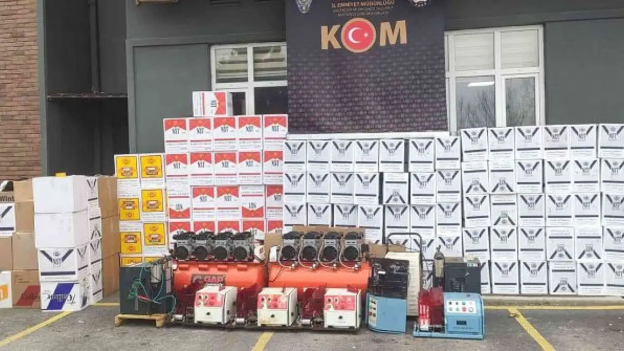 Öte yandan, operasyonda yapılan aramalarda, 3 milyon 638 bin 960 boş makaron, 251 bin 960 adet içi tütün dolu makaron, 548 kilo sigara tütünü, 46 kilo nargile tütünü, 810 adet yasal paketlerden sökülmüş bandrol, 8 sigara sarma makinası, 7 kompresör ve 13 adet gümrük kaçağı sigara ele geçirildi.