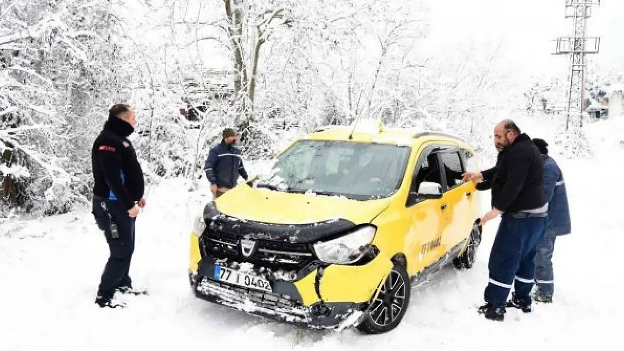 Yalova'da kar sebebiyle araçlar yoldan çıktı
