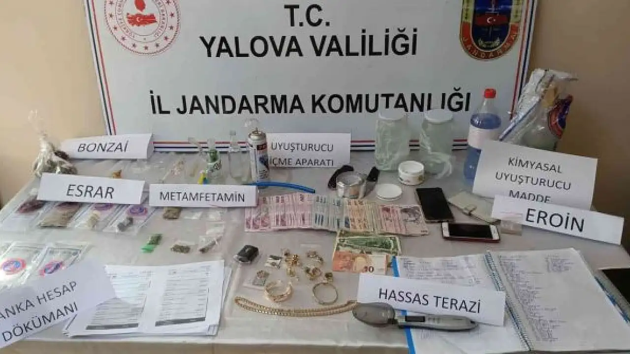 Yalova'nın Çiftlikköy ilçesinde düzenlenen operasyonda 3 kişi gözaltına alınırken, çeşitli tür ve miktarlarda uyuşturucu madde ele geçirildi.