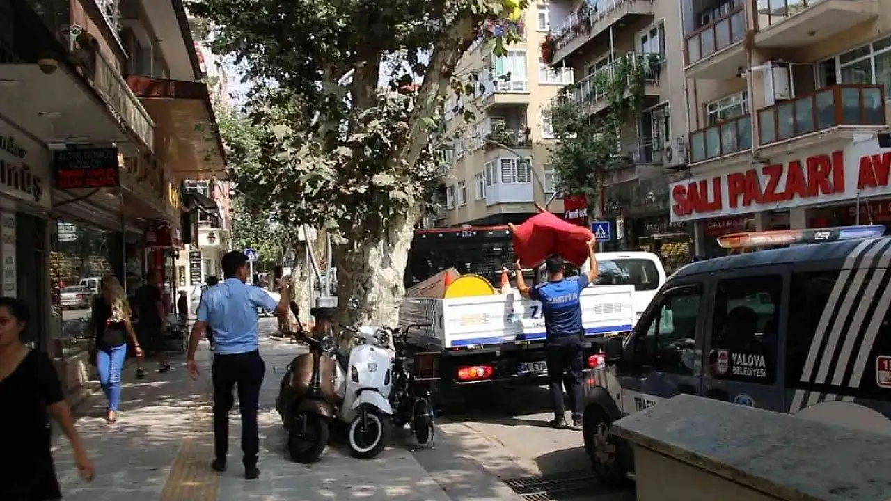 Yalova Belediyesi Zabıta Müdürlüğü ekipleri tarafından kaldırım işgaline yönelik yapılan çalışma gerçekleştirildi.