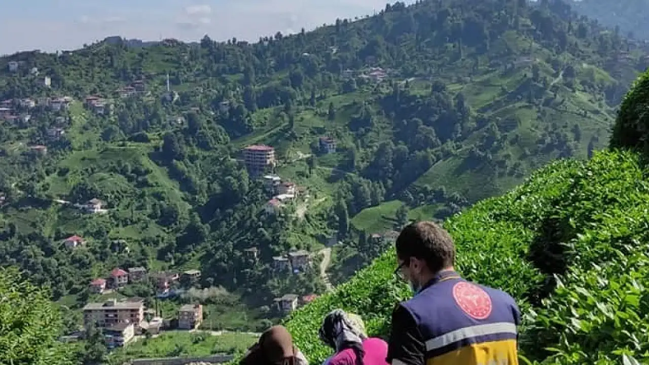 Rize'de yamaçtaki çay bahçesinden yuvarlanan şahıs sağlık ekipleri tarafından 400 metre aşağıya taşınarak hastaneye kaldırıldı.