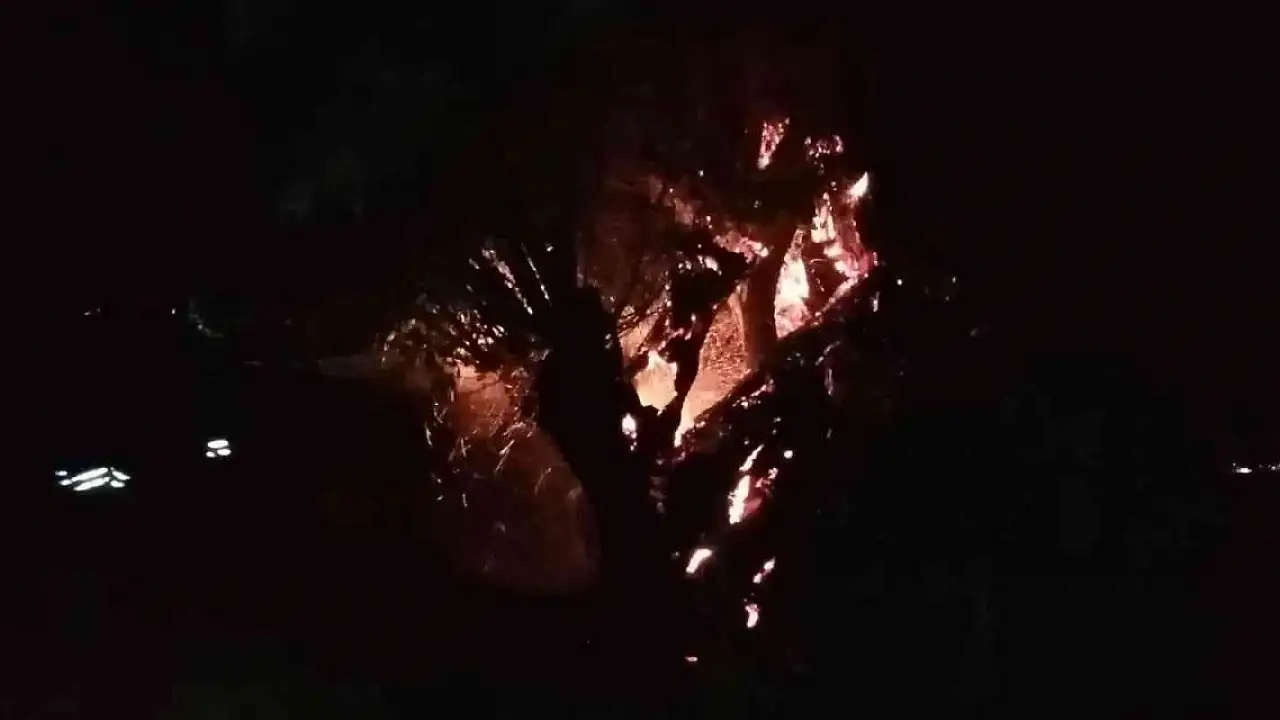 Yanan ağaç itfaiye ekiplerince söndürüldü