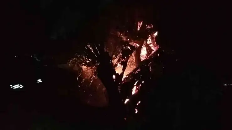 Erzincan'da alevler içinde kalan ağaç itfaiye ekiplerince söndürüldü.