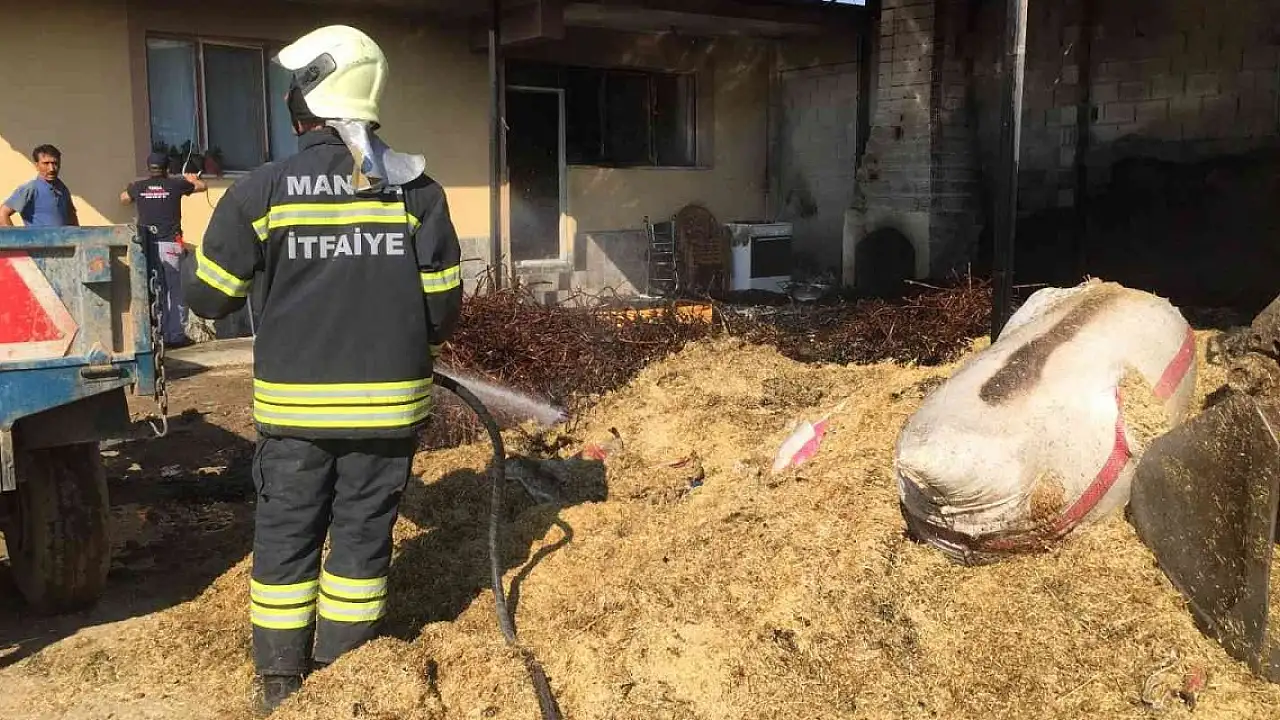 Manisa'nın Alaşehir ilçesindeki bir ahırda çıkan yangında 1 inek ile 10 koyun telef oldu.