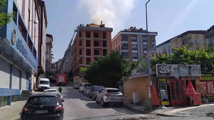 İnşaat halindeki 5 katlı binanın çatısında izolasyon çalışması sırasında yangın çıktı.