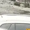 Tamir için dükkanda bulunan otomobiller çekilirken, anahtarı bulunamayan bir otomobil ise forklift ile kurtarıldı. O anlar cep telefonu kamerasına yansıdı.