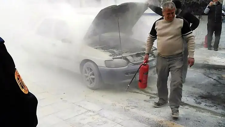 Alınan bilgiye göre, Turgutreis Caddesi'nde bir otomobil, seyir halindeyken henüz belirlenemeyen nedenle alev aldı. Otomobilin motor kısmından dumanların yükseldiğini fark eden sürücü ve yanındaki kişi hızla araçtan uzaklaştı.