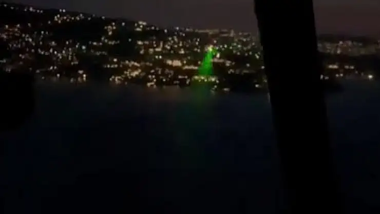 MUĞLA'nın Bodrum ilçesinde yangın kontrolü için devriye gezen helikoptere lazer tutuldu, o anlar cep telefonu kamerasına yansıdı.