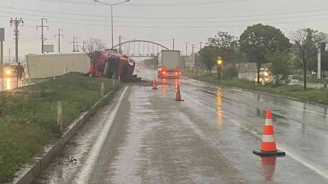 Afyonkarahisar'da kontrolden çıkarak devrilen tırın sürücüsü, çevredekilerin yangın tüpü ile aracın camını kırması ile çıkarıldı. Ölen ya da yaralananın olmadığı kazada maddi hasar meydana geldi.