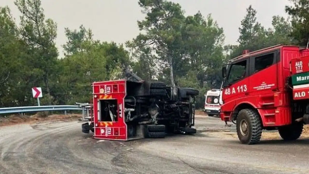 Muğla'nın Datça ilçesindeki yangına destek vermek için yola çıkan itfaiye aracı devrildi, kazada yaralanan olmadı.