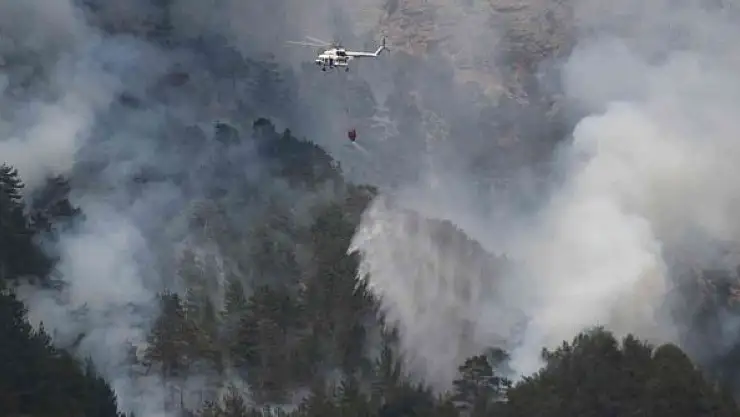 yangına helikopter, 200 işçi ve 22 arazözle müdahale ediliyor