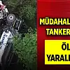 Devrilerek yan şekilde duran tankerin içinde sürücü ile 2 kişinin sıkıştığı görüldü. Seferber olan ekiplerin çalışmasıyla araçtan çıkarılan 3 kişiden 1’inin hayatını kaybettiği belirlendi.