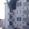 Yangında balkondan atlayan kadını havada tuttu