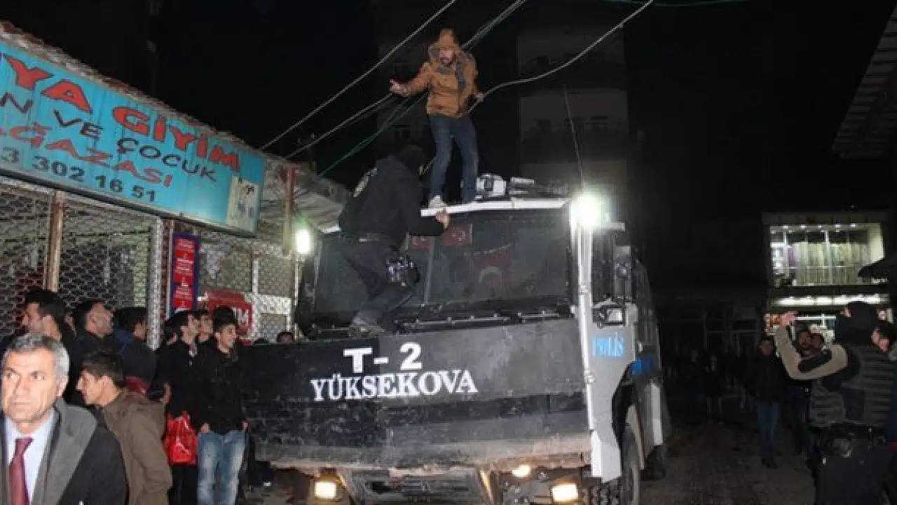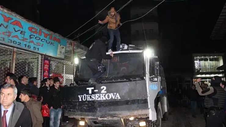 Hakkari'nin Yüksekova ilçesinde bir binanın çatı katında çıkan yangını söndüren 3 TOMA, bir grup tarafından taşlandı.