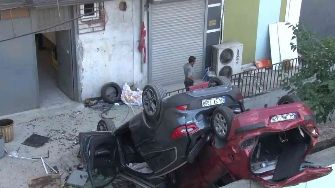 Ataşehir'de oto tamir dükkanına giden vatandaş egzoz kontrolü yaparken yanlışlıkla gaza bastı. Sürücü, önünde park halinde olan başka bir otomobili beraberinde sürükleyerek 2'nci kattan düştü. Kazada sürücü ağır yaralandı.