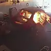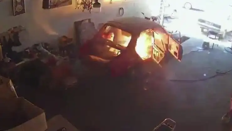 Olay ilçenin Küçük sanayi sitesinde saat 14.30 sıralarında meydana geldi. Otomobil kaporta dükkanında oksijen ile kaynak yapan Serhat Yüksel, otomobilin içinde çalıştığı sırada oksijen tüpünün alev alması ve hızla araçtan çıkmaya çalışması işyerinin güvenlik kameralarına yansıdı. Hafif yanıklarla olayı atlatan Serhat Yüksel, otomobilin içerisinden çıktıktan sonra oksijen vanasını kapattı. Yüksel ve olayı fark ederek iş yerine gelen komşuları hortumla su dökerek yangını söndürdü. Yüksel, iş kazasını hafif yanıklarla atlattı.