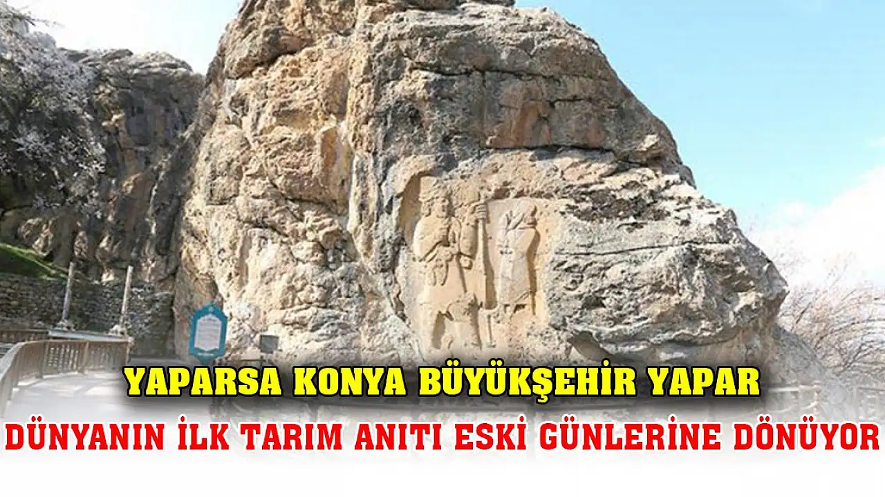 Konya'nın Halkapınar ilçesindeki Geç Hitit dönemi eserlerinden ve dünyadaki ilk yazılı tarım anıtı ile dünya tarihindeki ilk yazılı kabartma kaya anıtı olan İvriz Kaya Anıtı’nın bulunduğu alanda çevre düzenlemesi Konya Büyükşehir Belediyesi tarafından başladı.