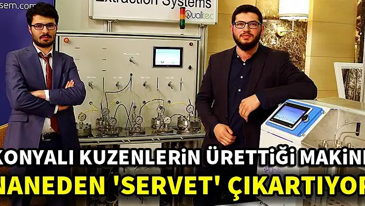 Konya'da iki kuzenin yerli imkanlarla ürettiği, atmosferik gazları basınç altında kullanarak bitkilerden yağ çıkaran makine, 12 liralık 1 kilogram kuru naneden, 260 avroluk esans çıkartıyor.
