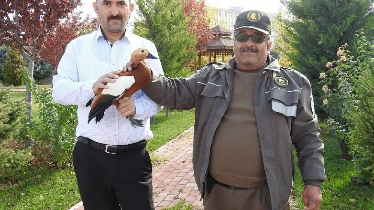Konya'da, doğada yaralı olarak bulunan angut kuşu koruma altına alındı.