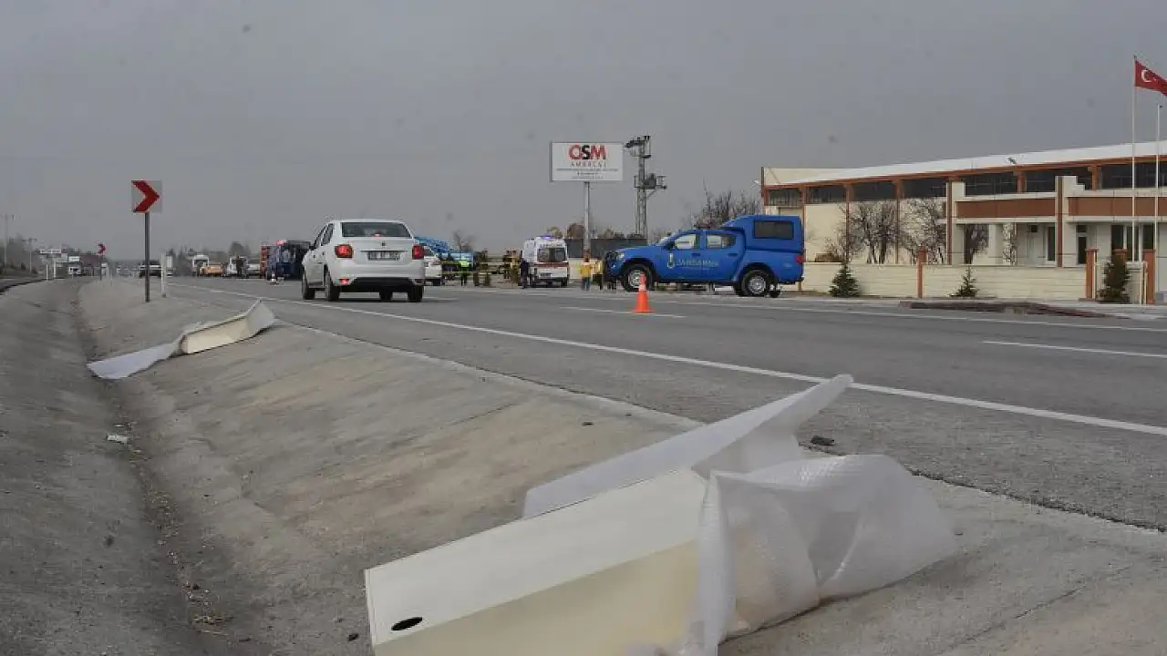 ÖNÜNDEKİ KAMYONETİN KASASINDAKİ PANOLAR YOLA FIRLADI