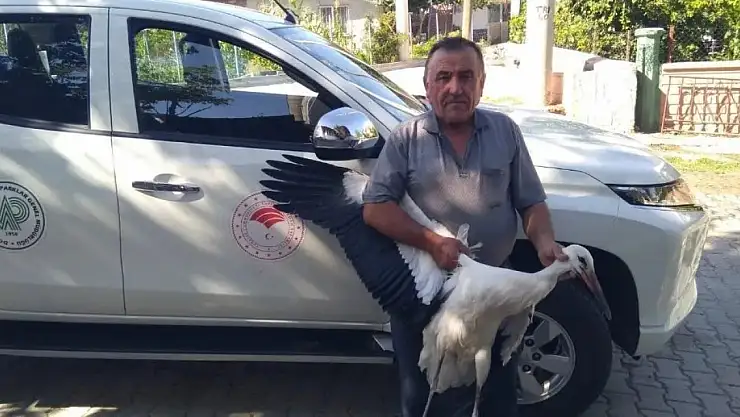 Konya'nın Beyşehir ilçesinde yaralı bulunan leylek Beyşehir Milli Parklar Şefliği tarafından koruma altına alındı.