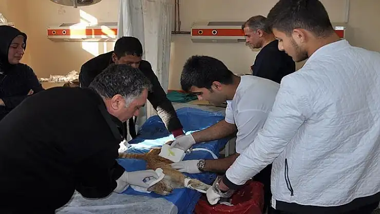 Hastanenin acil bölümüne gelen veteriner hekim Hüseyin Kutlu, arka ayaklarından ve karın bölgesinden yaralandığı belirlenen kediyi hastane personelinin de yardımıyla tedavi etti.