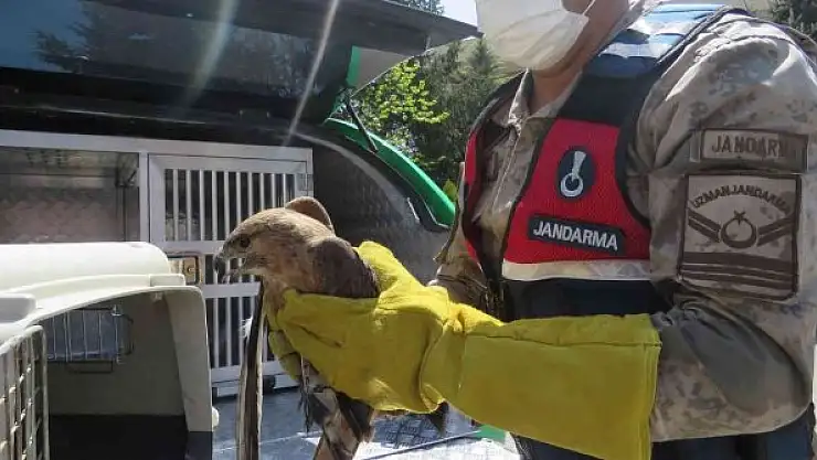 Erzincan'da jandarma ekipleri tarafından bulunan kızıl şahin Doğa Koruma ve Milli Parklar (DKMP) Şube Müdürlüğü ekiplerine teslim edildi.