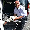 Yaralı leylek, gıda maddeleri ile doyurulduktan sonra Konya İl Gıda, Tarım ve Hayvancılık Müdürlüğü’ne götürülmek üzere koruma altına alındı.