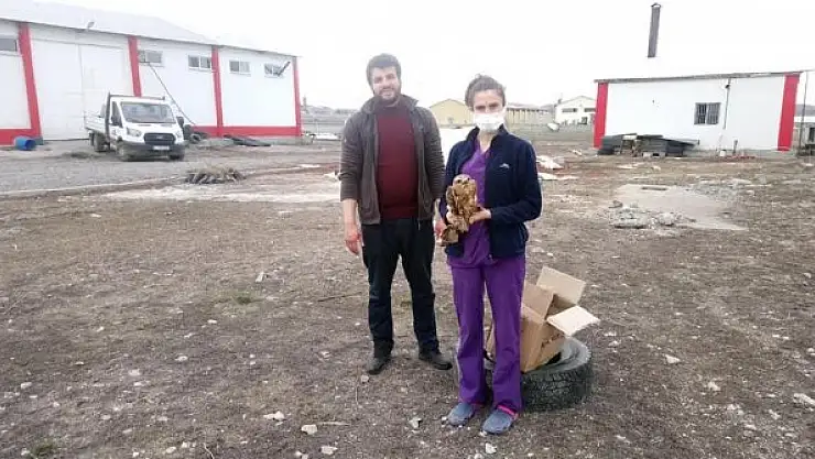 Kars'ta esnaf tarafından bulunan yaralı şahin tedavi adlına alındı.