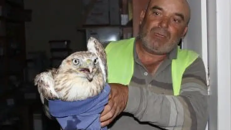 Talat Meriç, Kızören mevkisinde bir şahinin yerde hareketsiz durduğunu gördü. Kızıl şahinin yaralı olduğunu anlayan Meriç, hayvanı veteriner hekime götürdü.