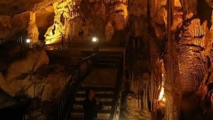 İkinci jeolojik zamana ait mermerler içinde, birbirine bağlı iki kat ve üç bölümünden oluşan mağara, ışıklandırma çalışmasıyla daha etkileyici bir görünüme kavuştu.