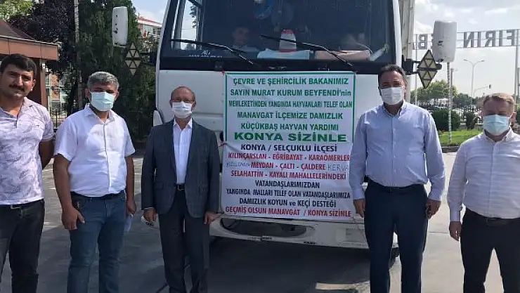 Geçtiğimiz günlerde büyük bir yangın felaketiyle karşı karşıya kalan Antalya bölgesine Konya’nın desteği sürüyor. AK Parti Konya Milletvekili Ahmet Sorgun, nerede kanayan bir yara varsa Konya’nın oraya merhem olduğunu söyledi. Yangının başladığı ilk saatlerden itibaren gerek yangın söndürme çalışmalarında gerekse lojistik yardımlarda en ön sırada olan Konya’nın yardım eli Manavgat’a bir kez daha uzandı. Kılıçaslan Mahalle Muhtarı Cumali Koçak önderliğinde Selçuklu ilçe mahallelerinden hayırsever vatandaşların topladığı küçükbaş damızlık hayvanlar kamyonlara yüklenerek Manavgat’a gönderildi. AK Parti Konya Milletvekili Ahmet Sorgun, AK Parti Selçuklu İlçe Başkanı Mustafa Hakan Özer ve hayırseverler kamyonları Manavgat’a uğurladı. Dünyanın bir çok ülkesinde olduğu gibi ülkemizin de büyük bir yangın felaketiyle karşı karşıya kaldığını belirten Milletvekili Sorgun, yangının ilk çıkış anından itibaren başta Cumhurbaşkanımız Recep Tayyip Erdoğan önderliğinde devletin bütün kurumları olmak üzere, belediyeler, sivil toplum kuruluşları ve hayırsever vatandaşlarımızın seferber olduğunu ifade etti.