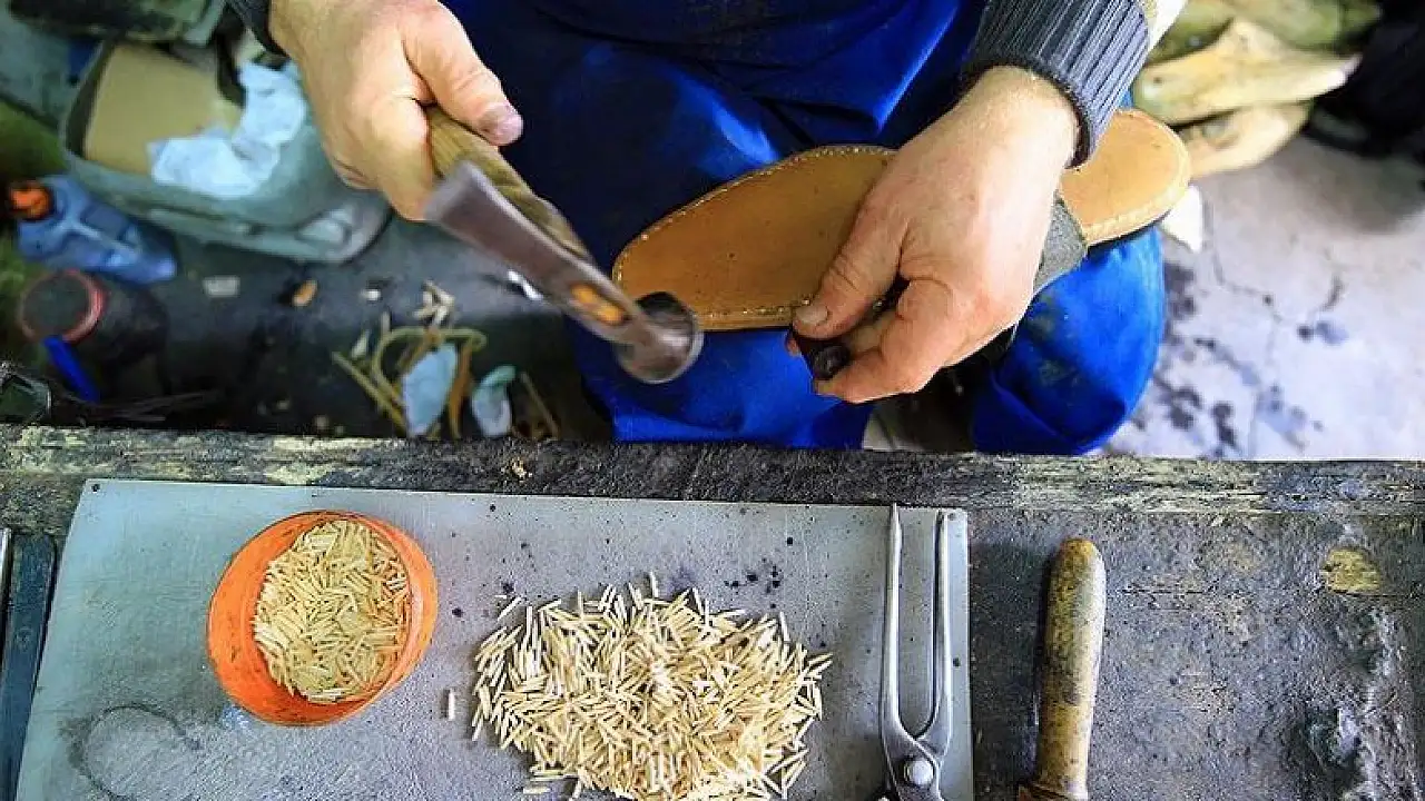 Yarım asırdır tahta çivili ayakkabı üretiyor