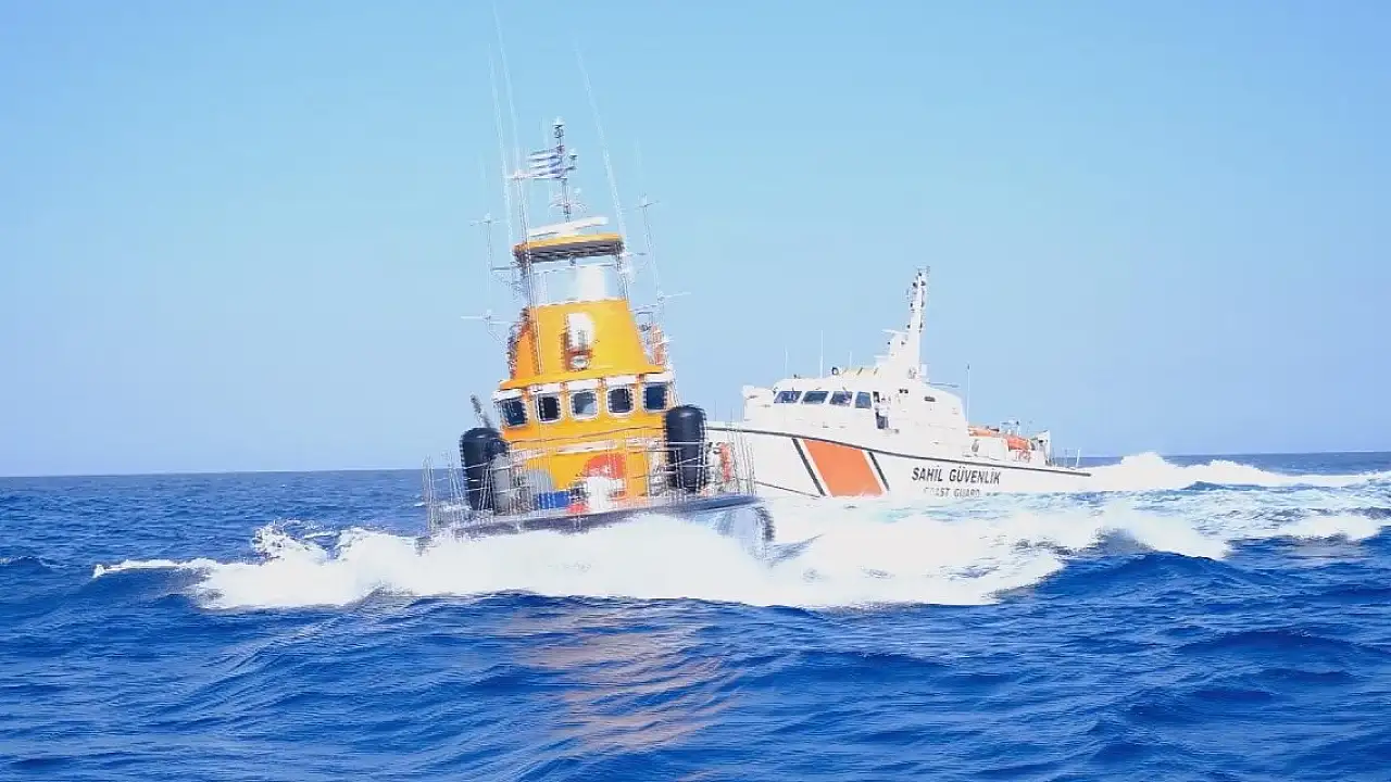 Yarışan teknelere yapılan Yunan tacizini Sahil Güvenlik Botu önledi