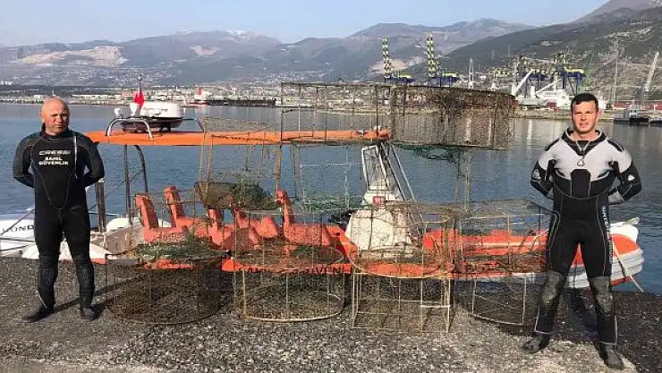 Hatay'ın İskenderun ilçesinde, yasadışı su ürünleri avcılığında kullanılan 35 adet kafese el konuldu.