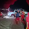 Olayı anlatan Cem Süt, "Biz oturuyorduk, arkadaşlar yüzüyordu o esnada imdat diye bağırış seslerini duyduk. Simitle birlikte suda bulunan kadını kurtardık. Ama adam dalgalar arasında kaldı, biz de simitle zor bela geri gelebildik karaya. Erkek şuan hala denizde, akıntı onu aldı götürdü." diye konuştu.