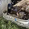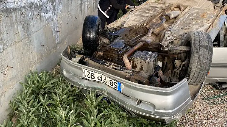 SİVAS'ta yaşı küçük sürücünün kullandığı otomobil kontrolden çıkarak, 5 metre yüksekliğindeki istinat duvarından şarampole devrildi.