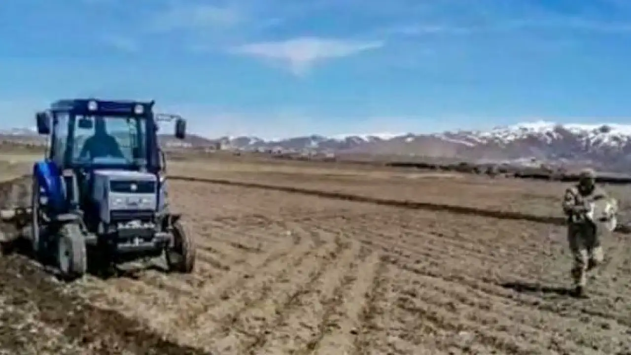 Van'ın Çaldıran ilçesinde yeni tip koronavirüs (COVID-19) tedbirleri kapsamında sokağa çıkması kısıtlanan yaşlı vatandaşın tarlasını, yardımına koşan güvenlik korucuları sürdü.
