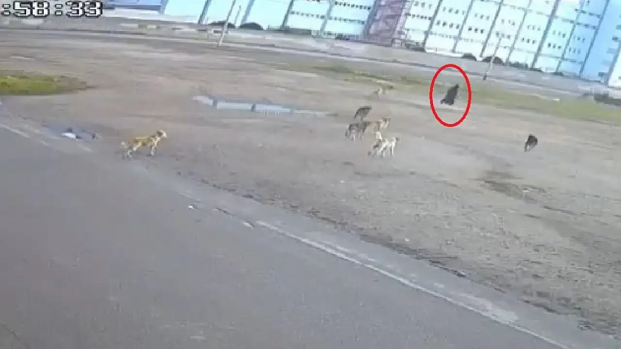 Öte yandan, saldırı anı ise çevredeki bir güvenlik kamerasına yansıdı. Görüntülerde; arsadan geçen F.B.'nin üzerine doğru hızla bir köpeğin koştuğu yer aldı. Daha sonra ise yoldan geçen diğer köpekler de koşarak kadının etrafını sardı. Kadın düşerken, etraftan gelen diğer köpeklerle birlikte, F.B.'ye saldıran köpeklerin sayısı bir anda 10'a ulaştı. Düşen ve köpeklerce ısırılan kadın güçlükle ayağa kalkarken, yoldan geçen birinin koşarak yardıma gelmesiyle, köpeklerin uzaklaştığı görüntülere yansıdı.