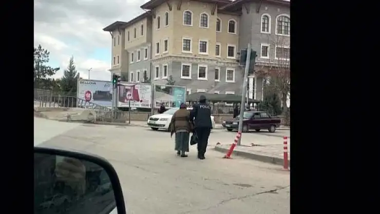 Yozgat'ın Yerköy ilçesinde yolun karşısına geçmeye çalışan yaşlı kadına polis yardımcı oldu.