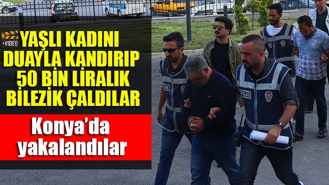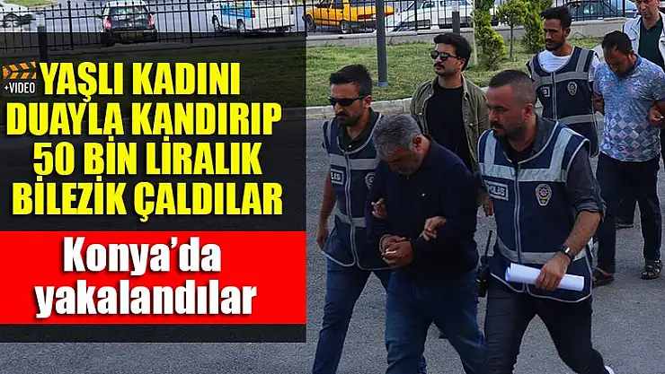 Karaman'da 75 yaşındaki kadının kolundaki 5 bileziği, kendilerini oğlunun arkadaşı olarak tanıtıp dua okuma bahanesiyle alıp kaçan 2 dolandırıcı, polisin titiz çalışması sonucu Konya'da yakalandı. Adliyeye sevk edilen 2 dolandırıcı tutuklandı.