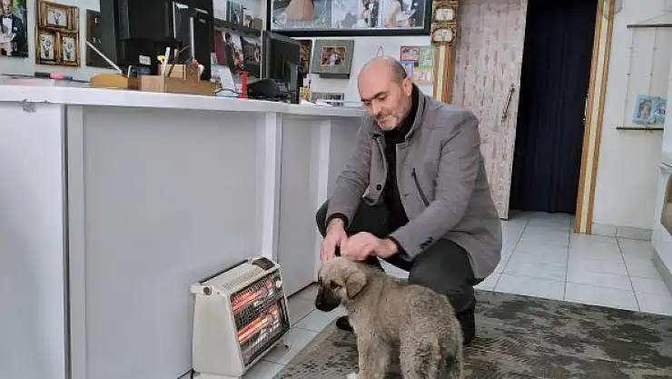 Karapınar ilçesinde hava sıcaklığı eksi 10 dereceye düşerken, sokakta kalan köpek yavrusuna bir esnaf sahip çıktı.