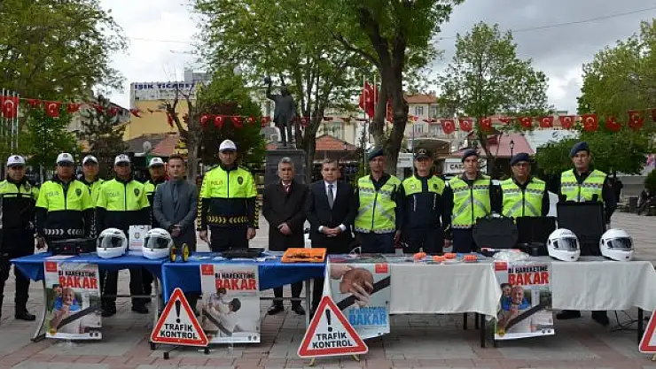 Karaman Valisi Mehmet Alpaslan Işık ve İl Emniyet Müdürü Ayhan Taş, Cumhuriyet Parkı'nda düzenlenen etkinlikte yaya geçitlerinden geçerek sürücülere broşür dağıttı.
